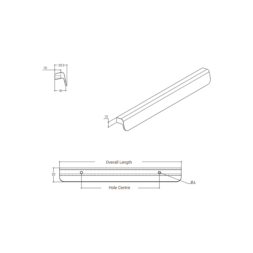 | Part Number | Hole Center | Overall Length | Projection |